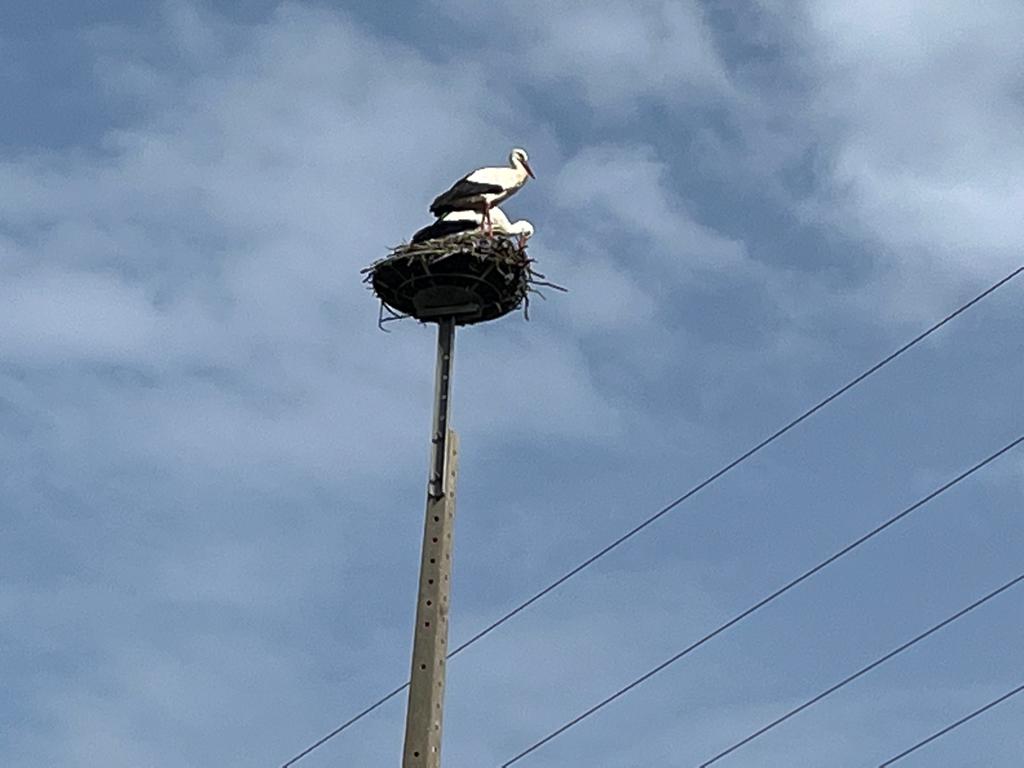 I watched another pair flying. They were ahead of me, and then I saw them land in a nest already full with what I thought were two parents. It is kind of like kids coming home to mom and dad’s to stay. Maybe storks have problems too and they’ve got kids staying with their parents longer!  Anyway all four in a huge nest.!  Kind of overwhelming. I will get some pictures at some point. Maybe I’ll park in the farmers driveway and take a chance that he’s not coming out until I’m gone.Â